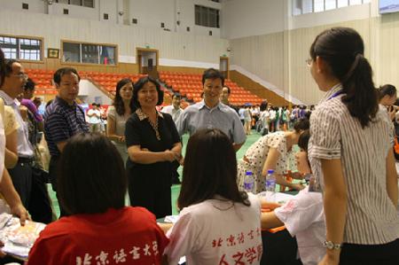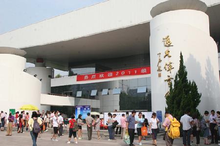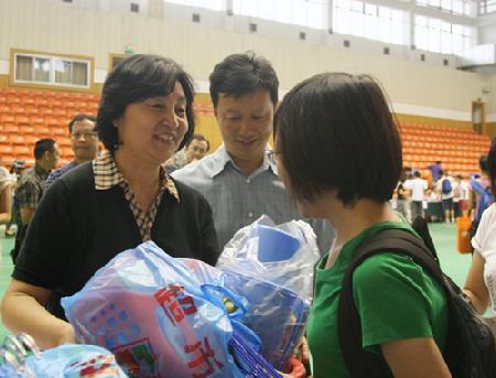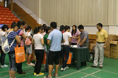 9月3日早上7:00,校园里一改暑假以来的宁静,校园主干道上、体育馆前彩旗飘展,人流涌动,到处洋溢着欢乐喜悦的气氛。学校各职能部门、各中国学生学院工作人员和迎新志愿者忙碌在逸夫体育馆内,迎接来自祖国各地的2011级本科新同学。