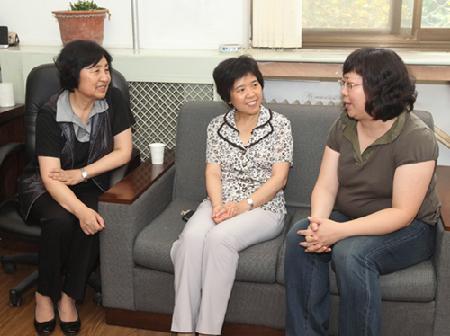 郑萼副主任首先问候了李丹同志的病情,对李丹不畏病痛坚持工作的精神予以肯定,对她乐观开朗的性格表示赞扬,并鼓励她以积极的心态战胜病魔。王路江书记说,校党委和各级党组织都在关心和支持李丹,是她坚强的后盾,并鼓励李丹继续积极乐观地工作与生活。郑萼副主任和王路江书记分别代表北京市教委和北京语言大学向李丹发放了慰问金。