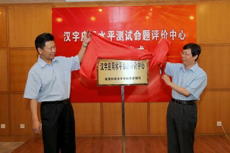 6月17日,汉字应用水平测试命题评价中心在北京语言大学正式成立。国家语委副主任、教育部语言文字应用管理司王登峰司长和北京语言大学崔希亮校长,共同为该中心揭牌。