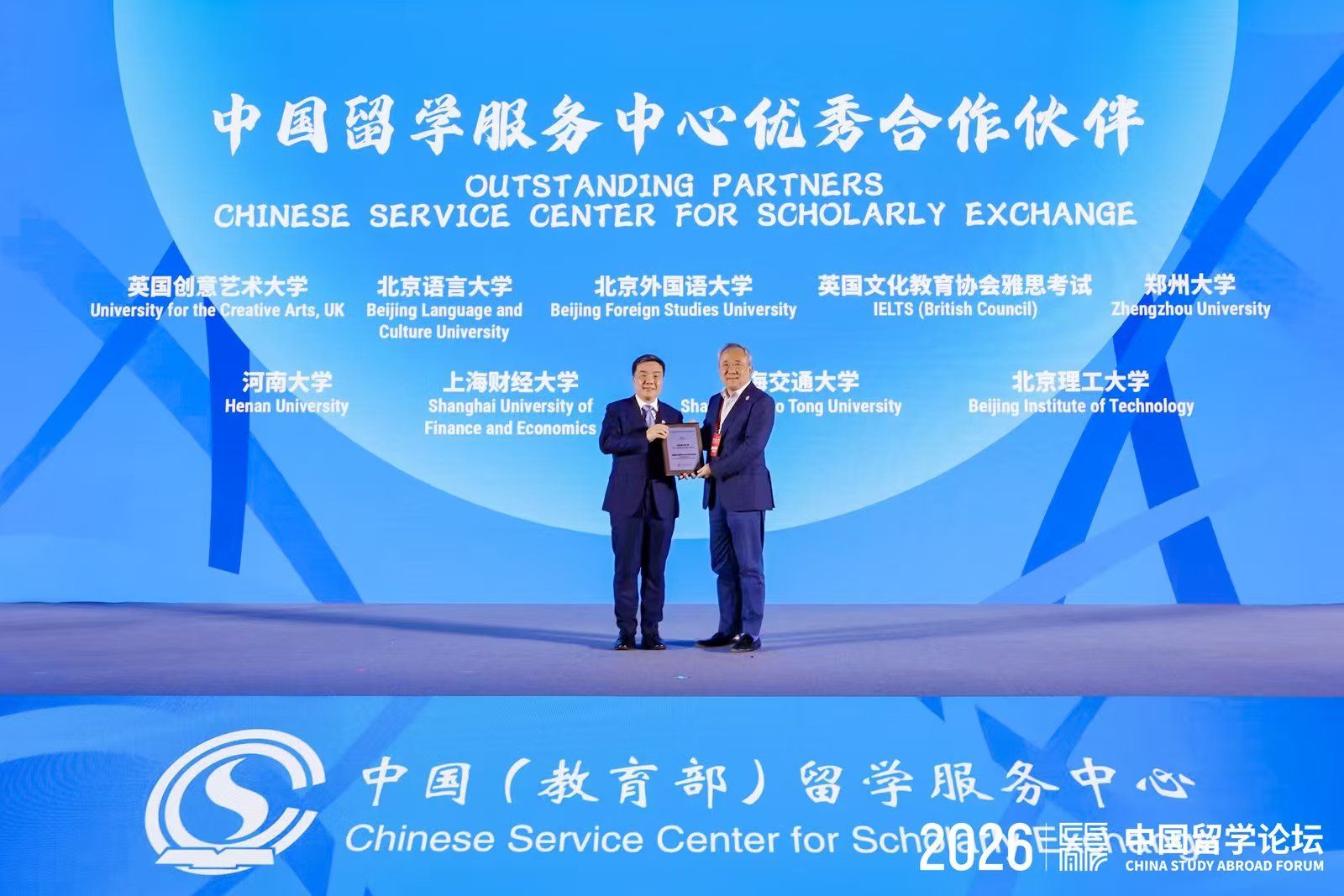 段鹏校长代表学校接受“中国留学服务中心优秀合作伙伴”荣誉称号