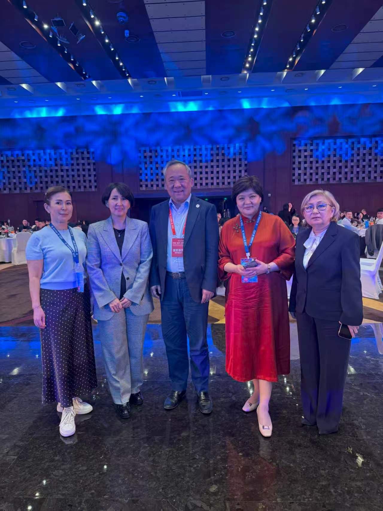 会议期间,段鹏校长与哈萨克斯坦科学与高等教育部副部长科别诺娃·古勒扎特·伊兹巴萨罗芙娜(左)及哈萨克斯坦国立女子师范大学校长别比特库尔・卡里莫娃(右)展开友好交流。