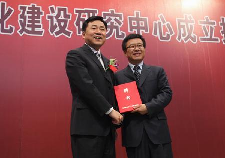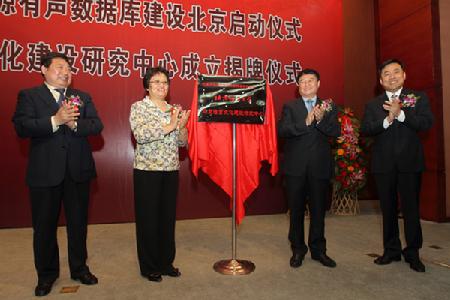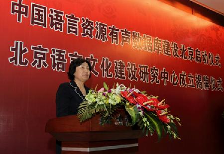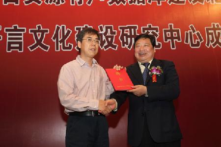 教育部语信司司长李宇明、北京市委教育工委副书记、市教委主任姜沛民分别为中国语言资源有声数据库建设北京项目专家组组长曹志耘教授、北京语言文化建设研究中心主任张维佳教授颁发聘书。北京市语委办主任贺宏志宣读《关于开展中国语言资源有声数据库北京建库工作的通知》和《关于成立“北京语言文化建设研究中心”的批复》。