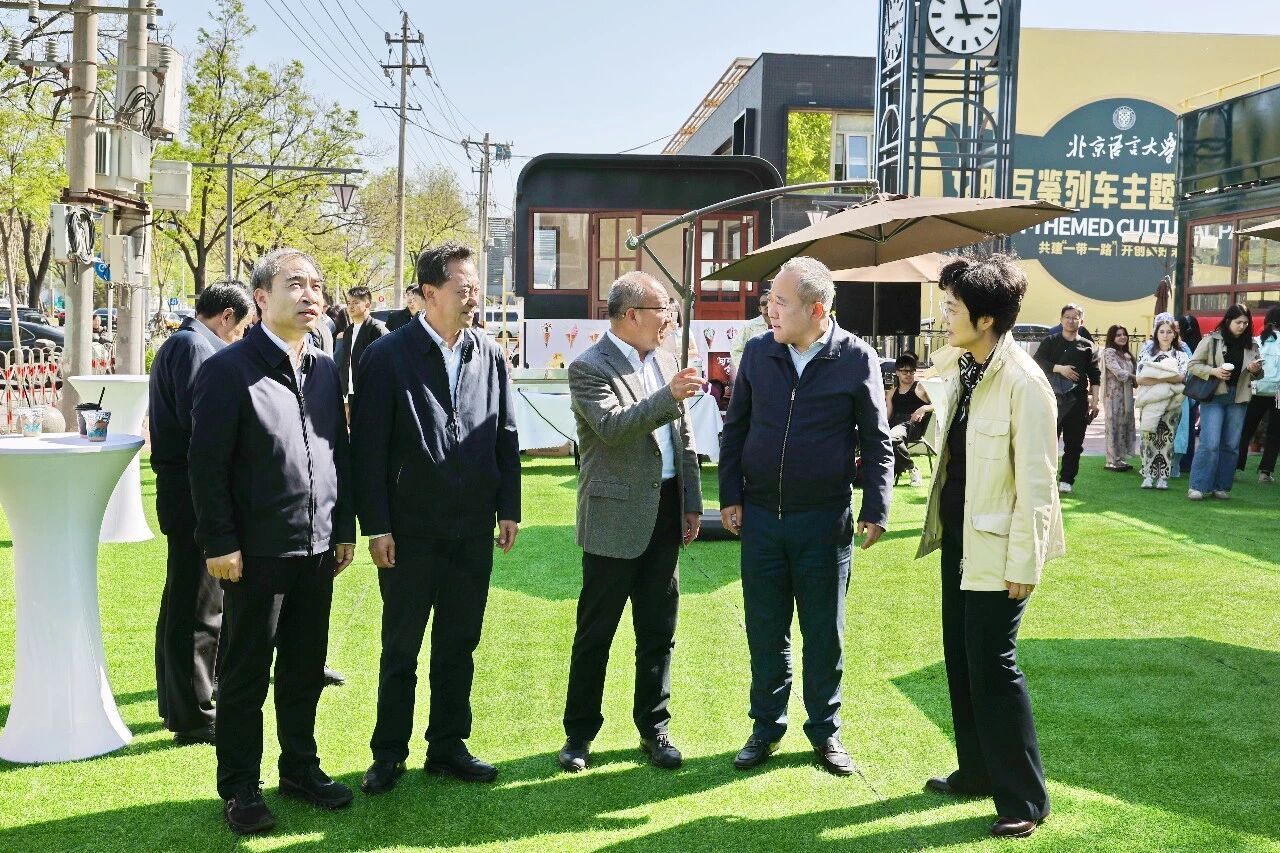 与会嘉宾首先走访了北京语言大学万国驿文明互鉴广场。该广场由北京语言大学与海淀区学院路街道共同创建,利用复古蒸汽火车打造特色街区,设置万国烧烤、法式风情、意大利小栈、哈瓦那之夜、世界墨语、寰球甄选、非遗臻萃堂、中华美食、梧桐书坊、宋韵香庭、九州风物阁等十余个展位,集中展示了各国文化饮食与非遗技艺,成为世界多元文化交流碰撞与和谐共生的生动缩影。