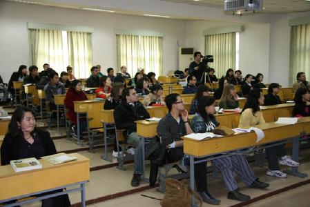 韩非子是法家的代表人物,其哲学思想影响深远。宁教授首先简要介绍了韩非子生平,并总结出韩非子四大政治思想:历史进步论、性本利、君主专制中央集权和法治。通过介绍其书中所记载的寓言故事,如自相矛盾、守株待兔、滥竽充数等,分析了韩非子朴素的辩证思想。讲座通篇以英文讲述,逐步引导中外同学认识韩非子其人其书。本学期首次作为选修课对来华留学生开放,已有汉语学院学生选修了该课程。
