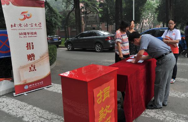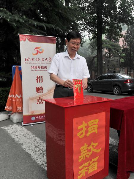五十载栉风沐雨,砥砺歌行,北语迎来了50周年校庆。自8月31日起,学校校庆办募捐筹款组在学校办公楼西侧宣传栏处设立了校庆捐赠点,接受校内外各类捐赠,为校友和师生员工参与校庆、贡献母校、襄助教育、关心和支持学校发展搭建了一个平台,广大师生积极响应,热情为学校捐赠。