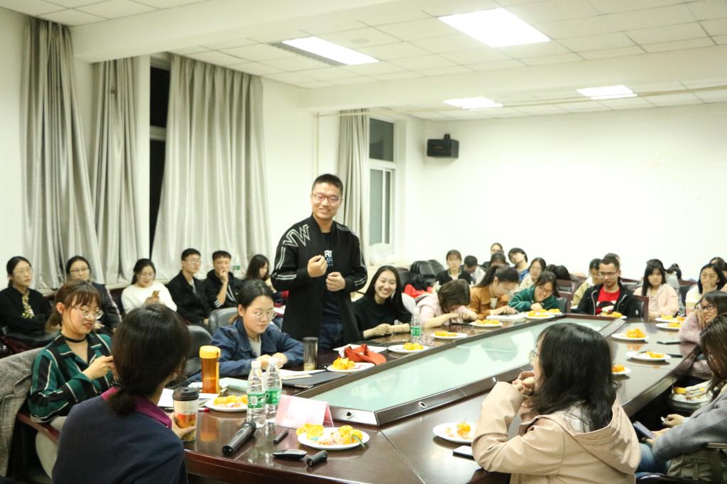 黄悦老师用一个问题:“你为什么选了现在的专业?”引发了同学们的探讨。有的同学分享了自己因热爱而转专业的经历,得到了老师的理解与鼓励;有的同学则简述了自己选专业的过程和对未来读研的思考。黄悦老师针对多数懵懂的学生提出未来规划的建议,即研究生阶段应该向自己所感兴趣的方向发展,并在未来从事真正令自己享受、带来幸福感的职业。还有研究生学姐提出了有关读博的疑问,老师同样悉心解答。之后,有同学提到老师参与电视节目录制一事,老师也大方分享,其风趣的语言引得现场笑声不断。
