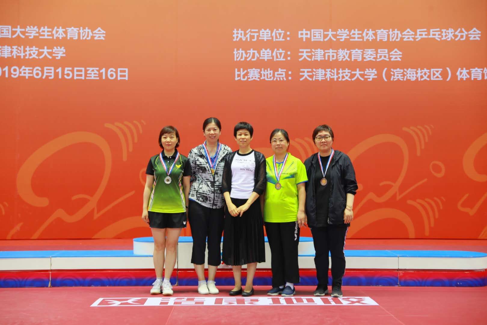 6月15-16日,第二届全国高校“教授杯”乒乓球比赛在天津科技大学举行。北京语言大学信息科学学院邵艳秋教授发挥出色,斩获40-49岁年龄组单打亚军和女双亚军两块奖牌。
