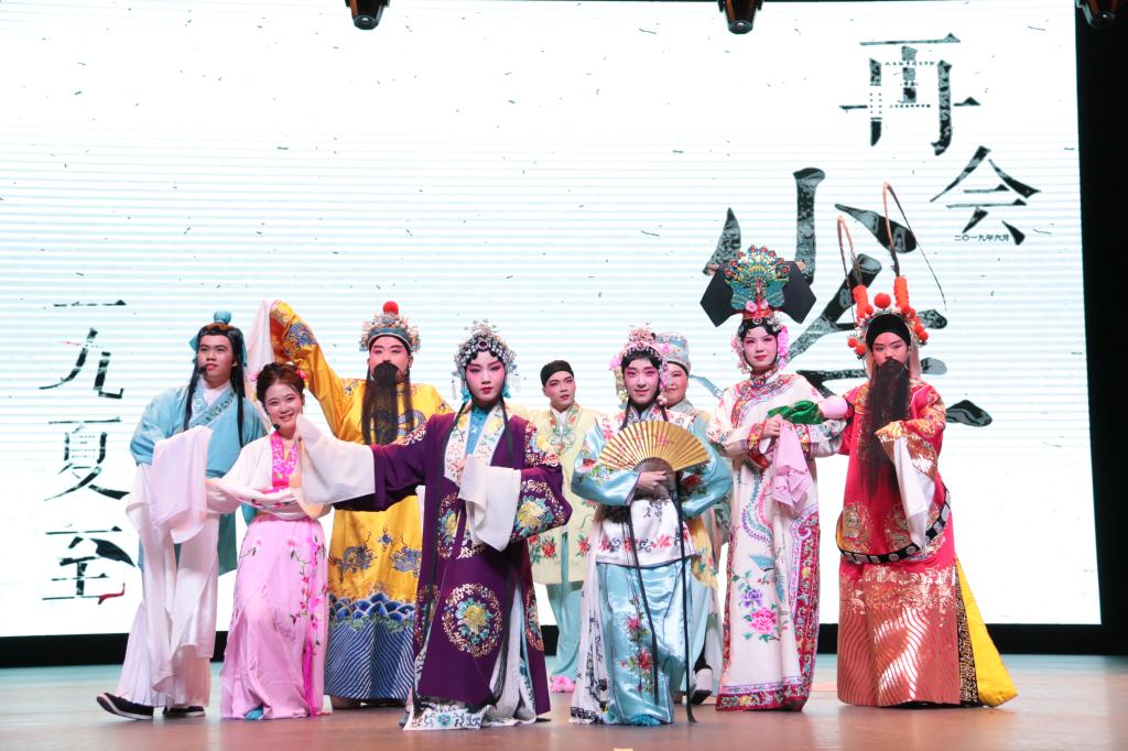 “十小青衣”戏曲队的初创者15级汉语国际教育专业王正等同学带来了戏曲节目《忆——不说再见》,用京剧、豫剧、越剧及黄梅戏选段给大家带来了一场视听盛宴,王正同学极富美感的舞水袖令人惊叹。