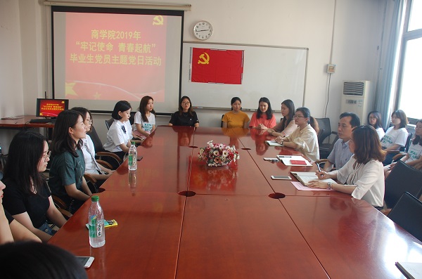6月25日下午,商学院在主南418会议室举行“牢记使命、青春起航”毕业生党员主题党日活动,商学院党总支副书记张政、张坤,辅导员张晴和全体毕业生党员参加了此次党日活动。