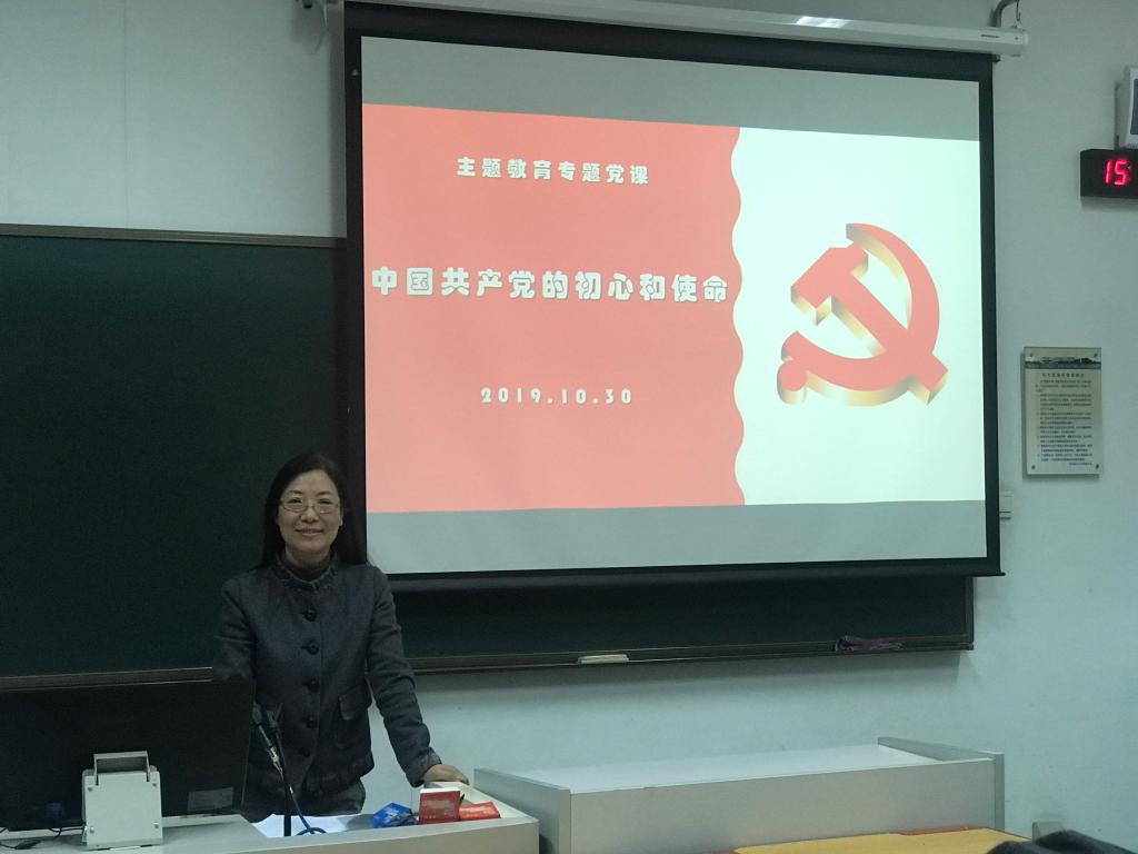 丁文阁教授从三个维度来讲述党的初心和使命。首先是从党的旗帜看初心和使命,然后是从党的历史角度看初心和使命,最后是从擘画看初心和使命。从历史的角度梳理了党的发展。经过党课教育,同学们对习近平总书记的讲话理解更加深刻,“开展‘不忘初心、牢记使命’主题教育,要牢牢把握守初心、担使命,找差距、抓落实的总要求,牢牢把握深入学习贯彻新时代中国特色社会主义思想、锤炼忠诚干净担当的政治品格、团结带领全国各族人民为实现伟大梦想共同奋斗的根本任务。”