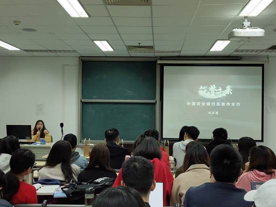 18届国际政治专业(国际经济方向)校友、现就职于中国农业银行北京市分行的刘业萌为同学们分享了自己在银行的面试经历以及笔试、面试的注意要点,并传授给同学们一些面试、笔试的技巧。