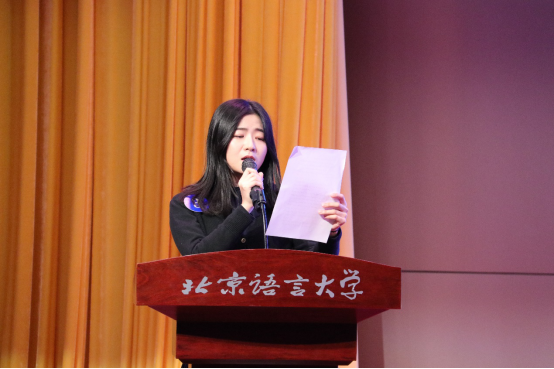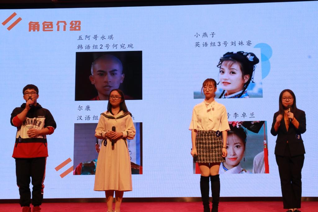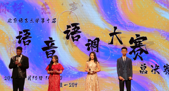 来自外国语学部高级翻译学院的施奕彤、胡子萌,来自英语学院的栾先骁以及汉语国际教育学部留学生奥尼担任本届语音语调大赛决赛的主持人。