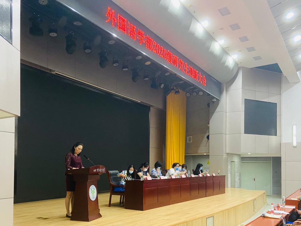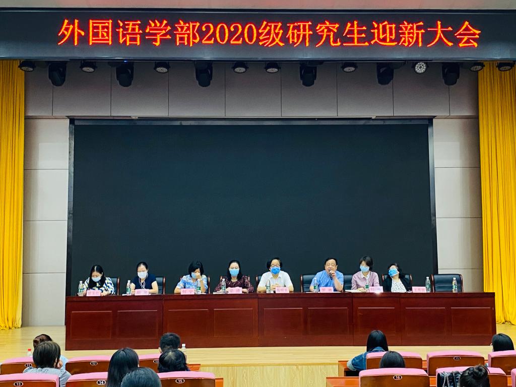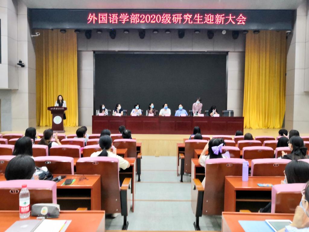 9月14日上午,外国语学部2020级研究生迎新大会在教一楼209举行。外国语学部主任高明乐、党委书记梁清、党委副书记刘洁、副主任罗林、副主任何宁、各学科负责人,以及2020级全体硕博研究生新生出席了本次会议。会议由学生办公室主任曹鑫老师主持。