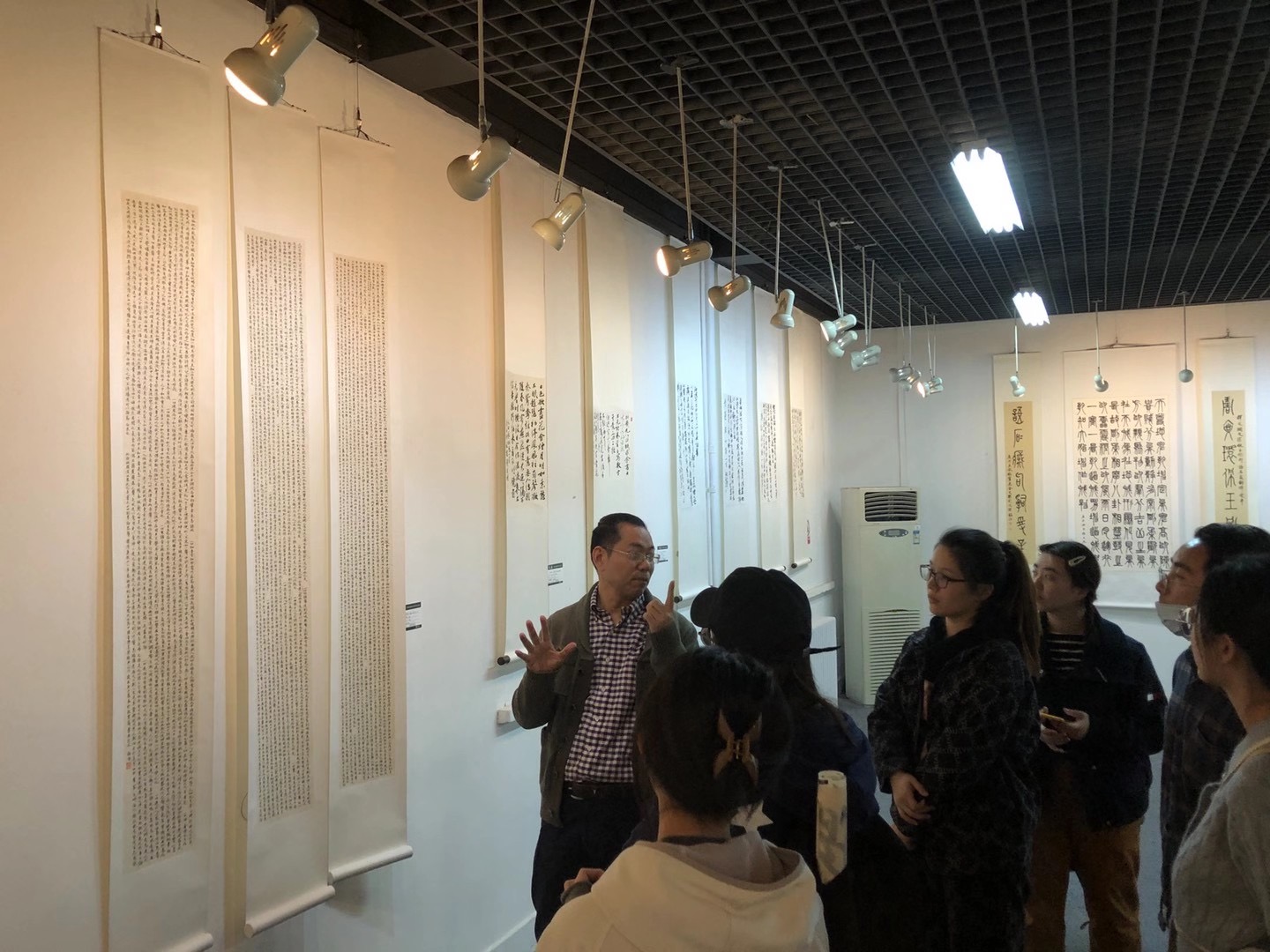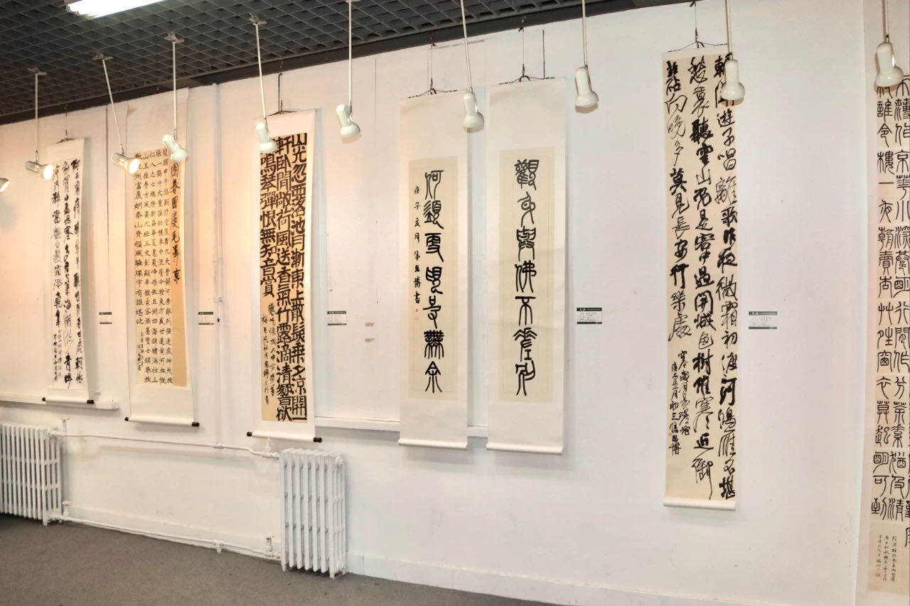 此次展览展出中国书法国际传播研究院在读硕博研究生和博士后疫情期间创作的书法新作,兼及工笔、山水等国画作品,共展出师生作品七十余件,是对在读硕博研究生近期在书法创作学习上的教学成果检验。本次展览所展出的作品内容丰富,有对历代书论名篇的选录,有对唐宋诗词古文的创作,还有对魏晋小楷内容进行的再创作;在创作形式上也同样具有多样性,条幅、扇面、手卷、对联、中堂等;在书体选择上包含了篆书、隶书、行草书、楷书等。、