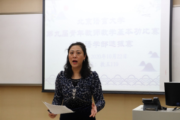 10月22日下午,北京语言大学第九届青年教师教学基本功比赛外国语学部选拔赛在教五楼110教室顺利举行。外国语学部高明乐主任、梁清书记、英语学院王振亚教授、东方语言文化学院孙佳音教授、中东学院陆映波副教授、应用外语学院曹泽煌老师、西方语言文化学院王怡雯老师、高级翻译学院郑泽老师担任本次比赛的评委。来自六个学院的13名青年教师参加了此次比赛。