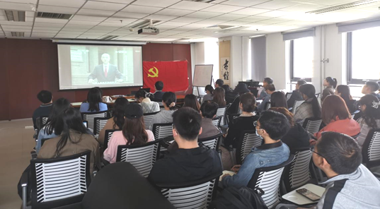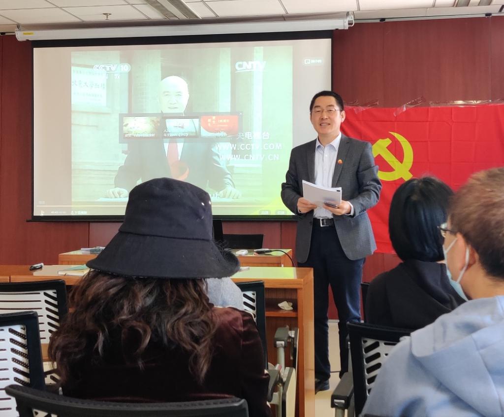 会上全体师生观看了CCTV10百家讲坛《党史故事100讲》之《五四运动、唤醒民众》的专题党课。视频全景讲述了五四运动发生的时代背景和社会基础,回溯了1919年5月4日进步学生组织的反帝爱国大游行、全社会民众参与的反帝爱国大罢工,直到6月28日中国代表巴黎和会拒签和约,中国人民的反帝爱国斗争最终取得了胜利。观看完党课视频后梁彦民书记强调,走得再远,也别忘了为什么出发,并再次带领大家学习了习近平总书记在党史学习教育动员大会上的讲话,“我们党的一百年,是矢志践行初心使命的一百年,是筚路蓝缕奠基立业的一百年,是创造辉煌开辟未来的一百年。回望过往的奋斗路,眺望前方的奋进路,必须把党的历史学习好、总结好,把党的成功经验传承好、发扬好。”