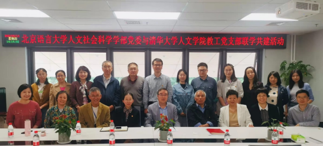 人文社会科学学部汉语教育学院党支部书记魏兆惠、支部委员梁慧婧,人文学院党支部支部委员胡珍子与清华大学人文学院近30位党员教师一同参加了活动。