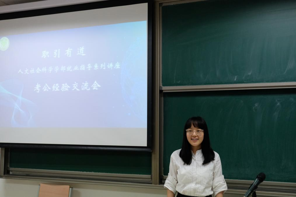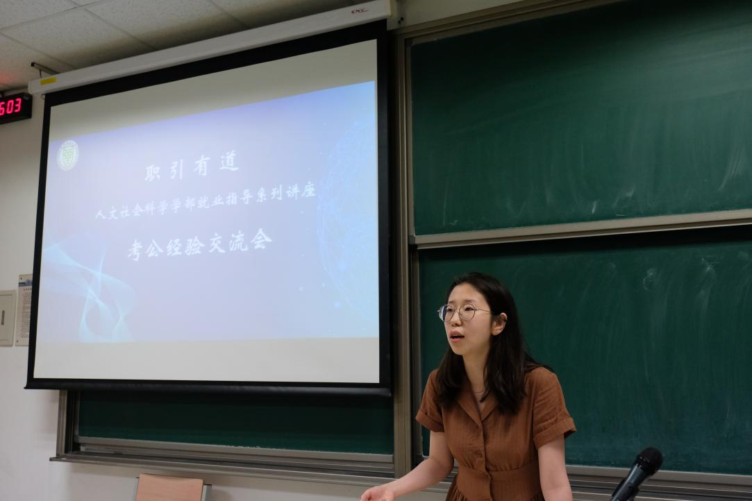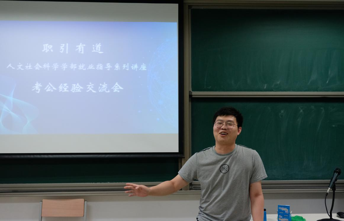 为解决人文学子的就业发展困难,帮助大家提前了解就业形势、就业潜力和行业特点,人文社会科学学部特举办“职引有道”就业指导系列讲座,为学生的职业规划和求职暖心护航。6月8日晚7点,“职引有道”主题讲座之考公经验交流会在教四105顺利举办。学部邀请到了三位优秀的18级研究生袁广慕、徐维、陈世雄作为主讲嘉宾,为同学们分享考公经历与考试经验。本次讲座由学部研究生会的杨玉婷同学主持。