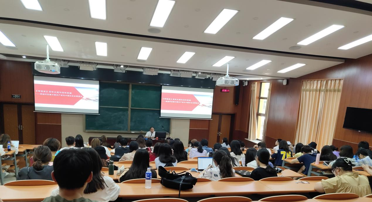 今年是建党百年,也是“两个一百年”奋斗目标历史交汇的关键节点,在这样一个特殊的历史时刻,重温和学习党史具有特别重要的意义。为深化落实党史学习教育相关要求,加强对党员的政治引领,6月18日中午,人文社会科学学部今年上半年新发展的百名党员齐聚主南102,共同聆听党委书记张阳老师题为“百年大党与百年党史——跨越时空看中国共产党与中国社会发展进步”的党课。学部本科生党务负责人曹文潇老师主持、研究生党务负责人万阳卓老师参会。