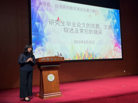 讲座伊始,北京语言大学商学院副院长宋晓玲教授就举办此次研究生毕业论文写作主题论坛的目的进行介绍,一方面是为减轻导师们在毕业生答辩过程中的压力,另一方面是希望学生能尽早明确毕业论文写作的重要性以及保证论文质量的重要性,这不仅事关学生个人,同时涉及多方,希望学生能远离学术不端,保质保量地顺利完成论文写作。