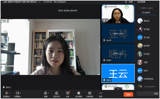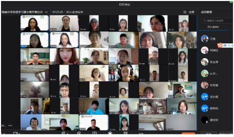 所有出席开营仪式的嘉宾和成员进行截屏合影留念,北京语言大学-海南中学英语语言学习暑期线上夏令营开营仪式圆满结束。