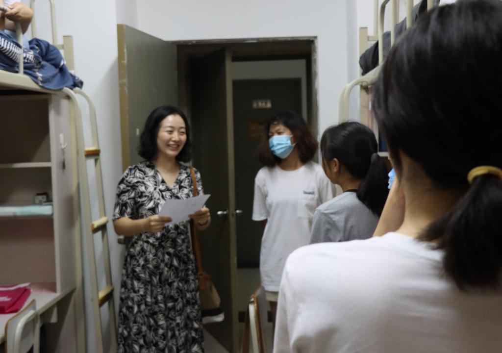 见面会结束后,新生班主任岳晶晶老师、于海涛老师、袁欣老师、许琼莉老师、温倩老师、丁珏老师,以及各班班助一起看望并慰问英语学院2021级新生宿舍。老师们关切地询问大家初到北语的感受,对同学们的学习生活及各方面的问题逐一给予了热情细致的解答,并勉励同学们要互帮互助,继续奋发学习。同学们真切感受到了英语学院大家庭的温暖与关怀,纷纷表示会牢记学校和老师的嘱托,不负青春,奋勇向前。