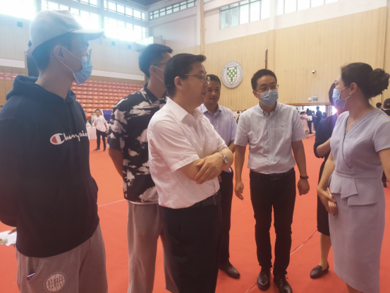 同时在新生报到期间,北京语言大学校长刘利及外国语学部的领导老师到现场视察了西院迎新展台,了解新生报到的情况,充分肯定了我院迎新准备和学生工作,并着重和辅导员老师了解了新生礼包和西院的发展情况。