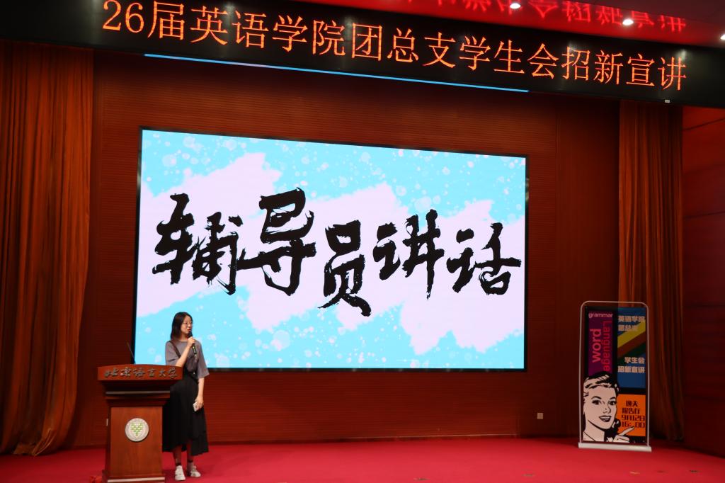 9月12日下午,英语学院团总支学生会(以下简称团学)招新宣讲会在逸夫报告厅召开。学生工作办公室唐诗琪老师,第26届团总支学生会主席团和部长团,及英语学院2021级新生参加了本次宣讲会。