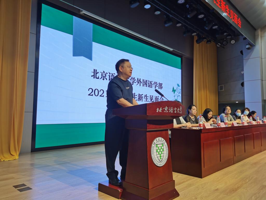 外国语学部主任高明乐教授首先对广大学子的到来表示了热烈的欢迎,并表达了对大家未来的深深期许。高主任谈到,新一代外语人要肩负起文化借鉴与创新的使命,为我们自身传统文化注入新的活力。为此,一是要坚定文化自信,在借鉴外国优秀文明成果的同时积极传播中华优秀传统文化。二是要扎实外语基本功,提高跨文化交际的硬实力。
