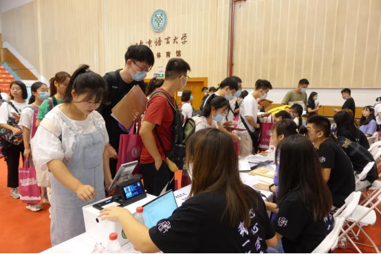 天朗气清,秋阳正好。9月11日,校园里人头攒动,梧桐大道上的万国旗迎风飘扬,北京语言大学信息科学学院2021级新生报到在逸夫体育馆顺利进行。