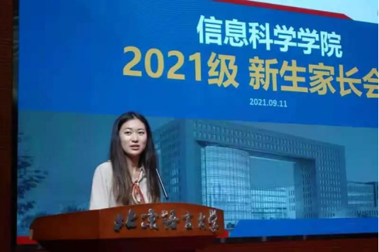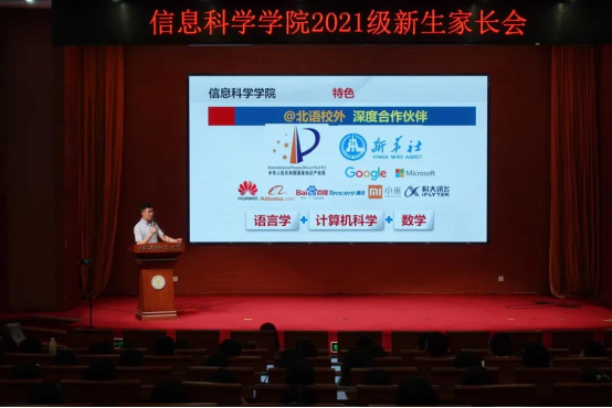 9月11日下午2时,北京语言大学信息科学学院2021级新生年级大会在逸夫报告厅顺利举行。为响应学校防疫政策,新生家长会以线上的方式同时召开。