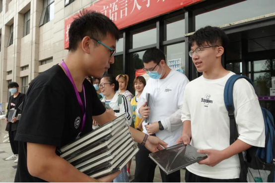 9月12日,北京语言大学信息科学学院2021级新生游园会顺利进行。游园会开始前,大家在主楼前按班级分组排好队,听从班助的安排。