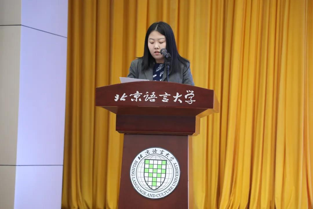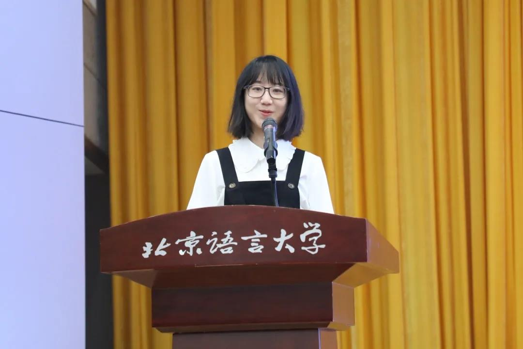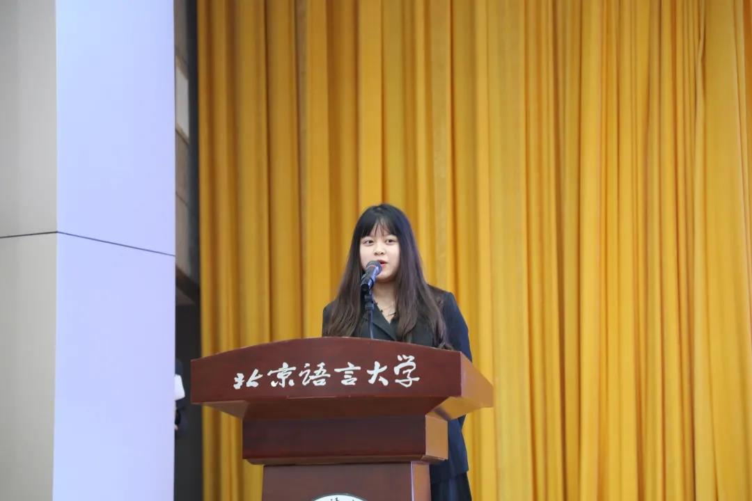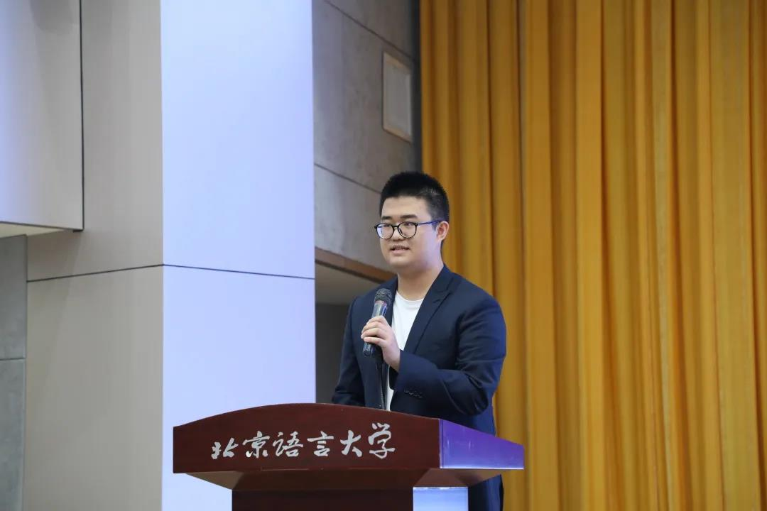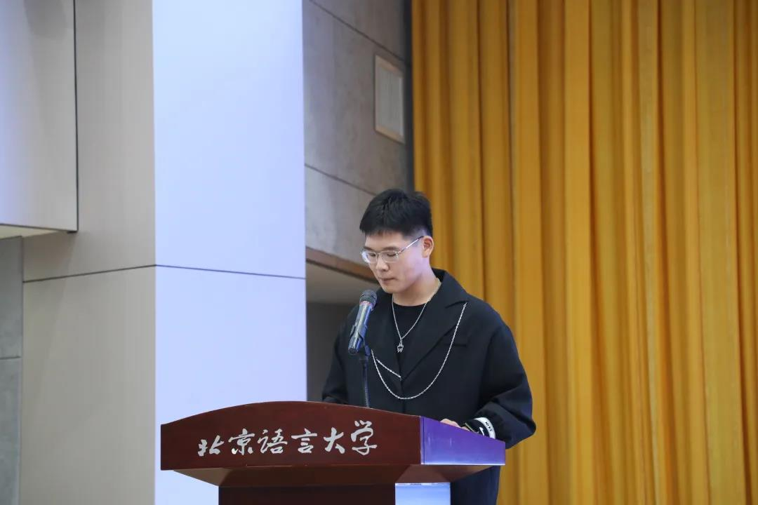 随后,融媒体中心综合运维部干事戚浩博代表发言,阐释了自己对学生工作的理解,表示自己会始终铭记使命,以百年前的文人志士为标杆,向着目标不断前进;同时呼吁大家不忘初心,有所收获。