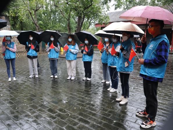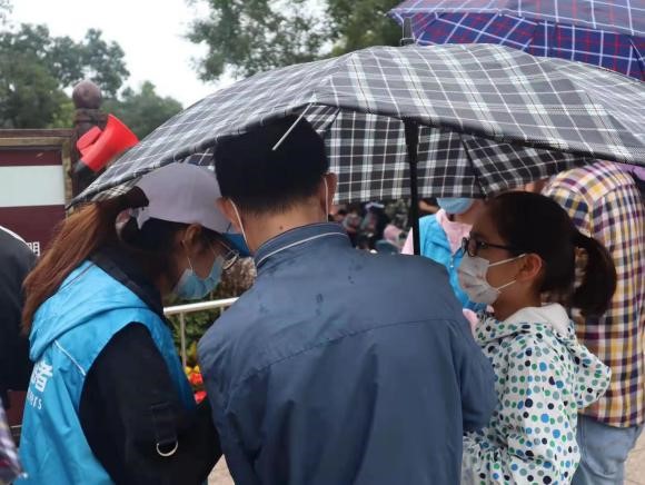 此时恰逢国庆长假,来往游客络绎不绝,连绵阴雨与长时间的低温对于志愿者们来说更是一个挑战,正因为有着为人民服务,投身基层志愿服务的热情,越来越多问题的顺利解决,同学们很快适应了自身的志愿者角色,主动询问,认真解释,积极引导,在自己的岗位上践行着“奉献、友爱、互助、进步”的志愿服务精神。午饭与午休的轮班制保证了志愿者们更好地在岗在位切实为群众为游客朋友认真服务,排忧解难。