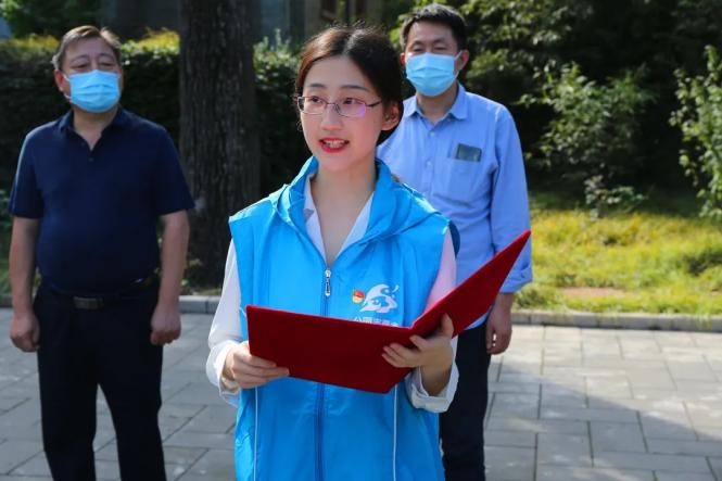 9月27日上午,香山公园党团员志愿服务活动启动仪式暨“两节一期”誓师大会于香山公园顺利召开,我校大学生志愿者2018级王一琳同学作为代表发言。她倡议,大学生要从我做起,积极做志愿服务精神的传承者,做传播香山文化的践行者,用奉献诠释青春使命。