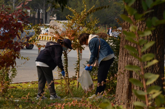 还有人弯下腰、弓起背将残存的秋叶拾起…