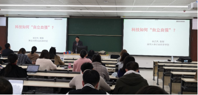 11月3日下午,清华大学社会科学学位分委员会主席,社会学系李正风教授走进我校博士生“中国马克思主义与当代”的课堂,作了题为《科技创新与社会发展:科技如何自立自强?》的讲座。讲座由马克思主义学院副院长贾甫出席主持,博士生百余人聆听了讲座。