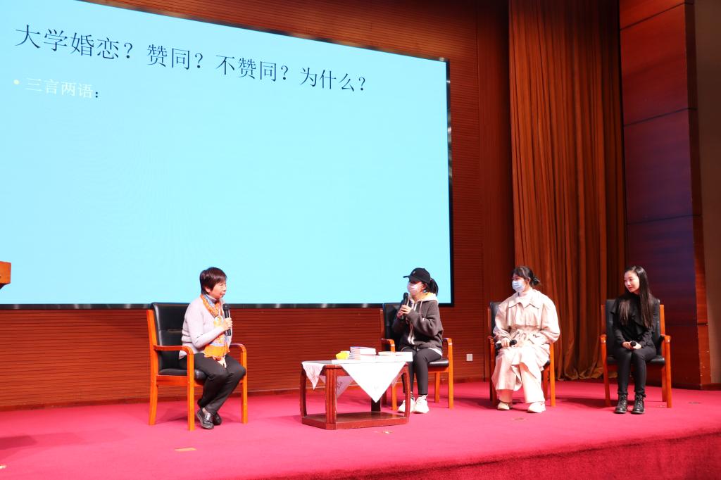 接着,刘和平教授结合自己的经历,向同学们分析大学间谈恋爱的利弊以及婚后会产生的种种问题,让同学反思现实中的爱情是否真的如自己所想一样美好。同时希望同学好好想想自己想在大学完成什么目标,尽量在大学留下青春的痕迹,别让大好年华匆匆流逝。