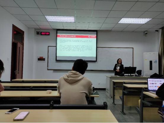 在交流环节,同学们针对商业银行理财子公司的投资范围及份额、理财子公司的就业实习方面进行提问,侯璐璐老师积极地与同学们互动并详细地做出了解答。