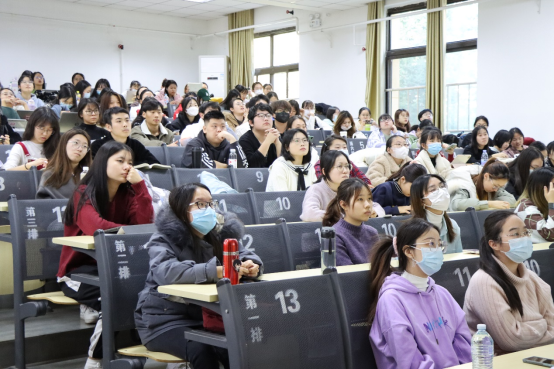紧接着,伴着轻快舒缓的音乐,毛星月老师向大家介绍了大学生心理危机的应对策略。毛老师就何为心理危机、心理概念的差异、如何安抚抑郁症患者等一系列问题进行了阐明与讲解。毛老师希望大家互助互爱,共同创建团结友爱的班风,发现异常要及时向老师汇报,快乐地度过大学的美好时光。