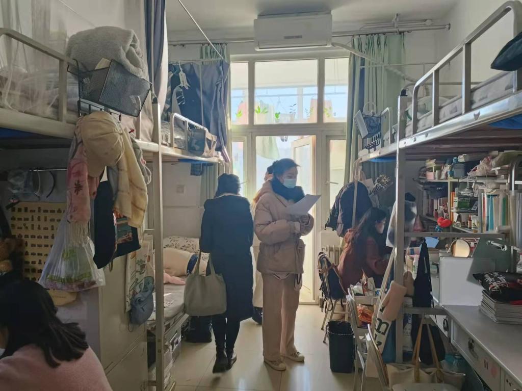 师生们分为6个组对学院宿舍进行了全覆盖检查。各小组重点对宿舍用电安全、宿舍卫生状况等进行了检查,对安全隐患、卫生死角逐一排查。检查过程中,老师们与学生们进行亲切交谈,了解学生们在宿舍生活中存在的问题和意见建议,叮嘱同学们重视宿舍安全卫生工作,规范用电,宿舍成员合力营造一个安全、健康、舒适的学习和生活环境。