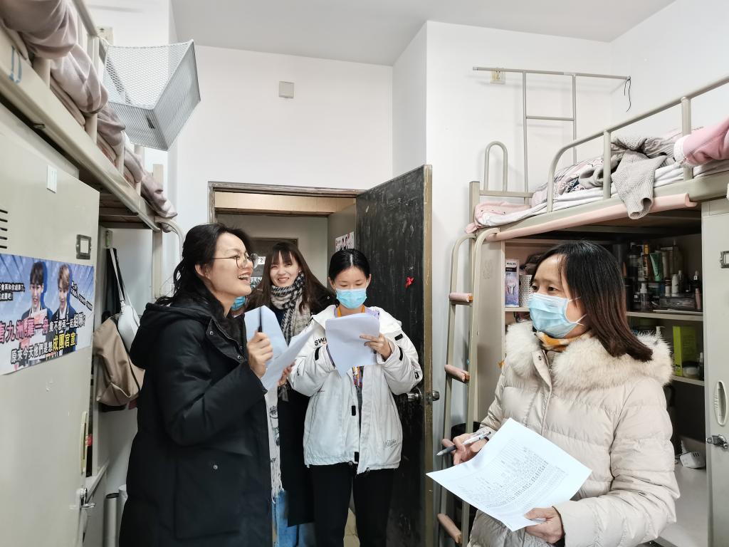 为切实提升疫情防控常态化期间学生宿舍安全卫生防护,全面排查消除学生宿舍安全隐患,建设整洁的宿舍环境,12月24日下午,商学院党总支书记张政老师、党总支副书记张坤老师和各年级辅导员老师们带领学生干部深入学生宿舍展开安全卫生检查。
