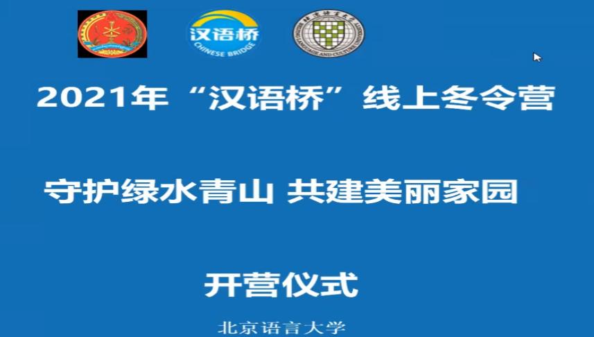 由教育部中外语言合作交流中心主办、北京语言大学承办的2021年“汉语桥”线上团组项目——“守护绿水青山 共建美丽家园”环保主题冬令营于近日顺利开营。柬埔寨金边皇家大学外国语学院院长刘少群(Tith Mab)、北京语言大学国际教育管理处副处长黄潇潇、柬埔寨金边皇家大学外国语学院中文系系主任艾松亭(Ith sothea)、柬埔寨金边皇家大学DHY汉语中心主任周丽云等领导,教师和工作人员代表,以及120余名学员参加了开营仪式。