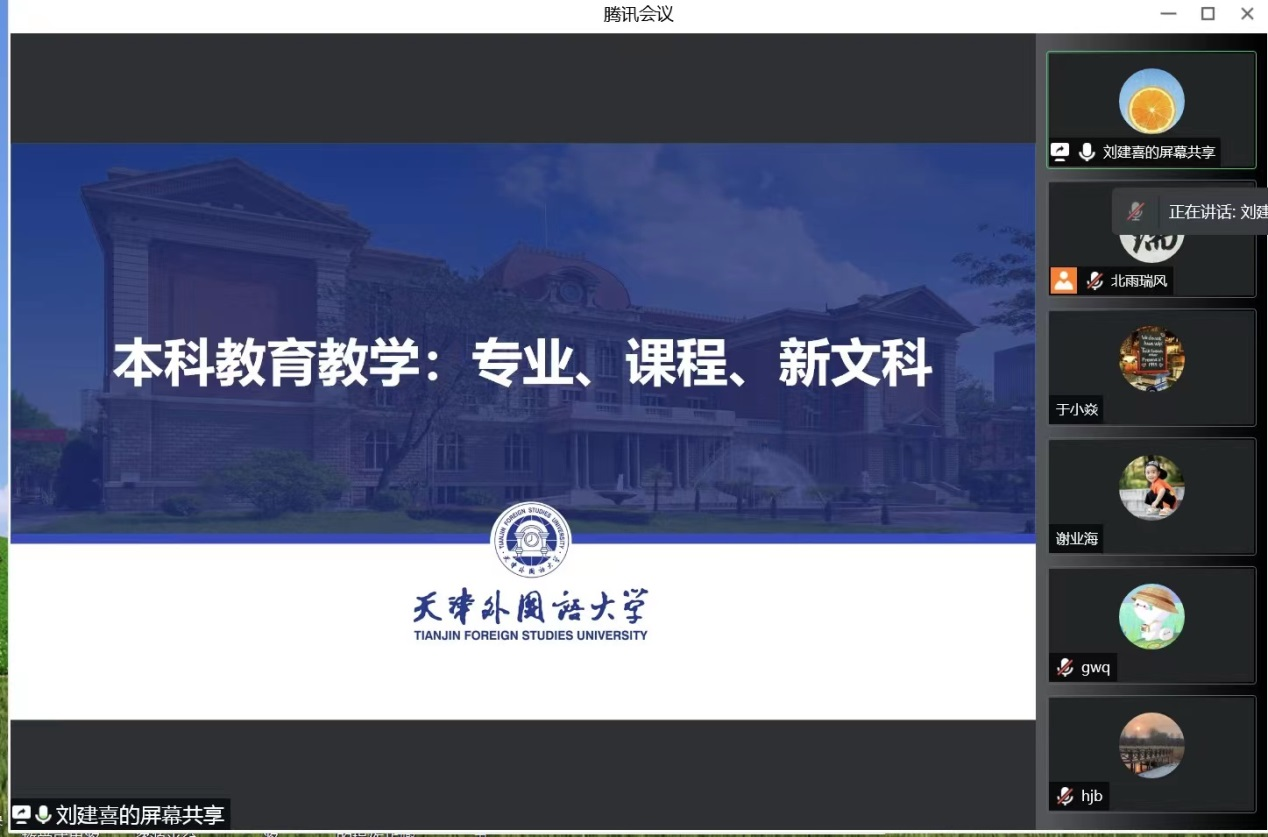 4月7日下午,高教前沿系列讲座第13期开讲,本次讲座特邀天津外国语大学教务处处长刘建喜教授,主题为“本科教育教学:专业、课程、新文科”,讲座以线上线下相结合的方式进行。学部(院)教学负责人及教务处全体人员参加了此次讲座。