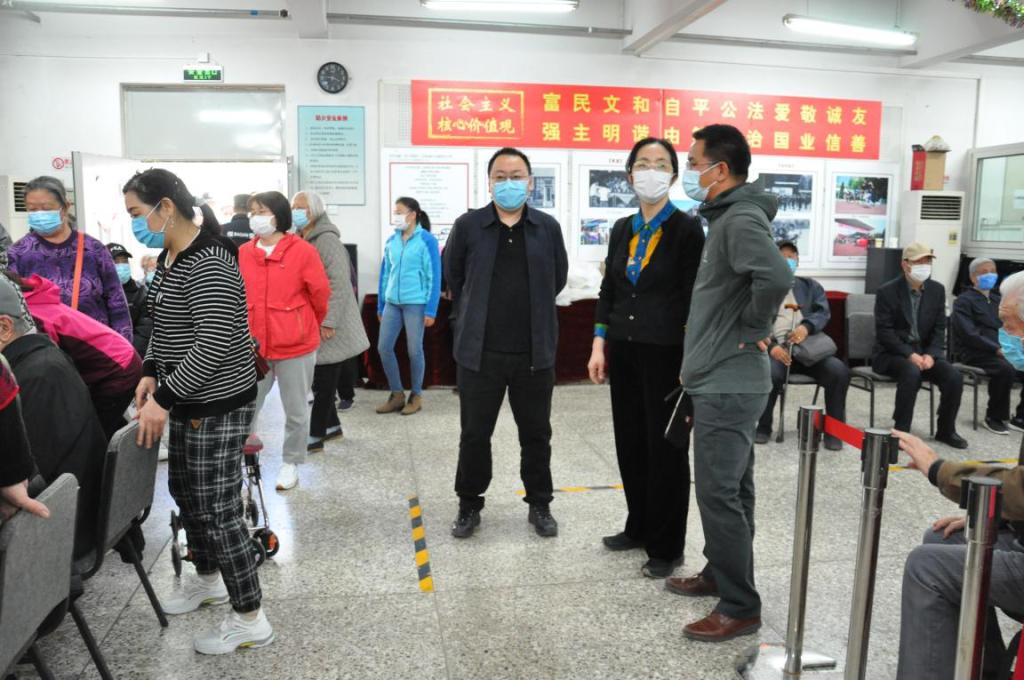 4月14日下午,疫苗接种流动车开进北京语言大学社区,学院路街道党工委副书记、街道办事处主任康云带队亲临接种现场指导工作。办事处副主任兼民生保障办公室主任洪熙、街道综合事务办公室主任秦爱光及包片科室住房保障办公室王飞燕科长、丁立波科长也积极参与了疫苗接种服务保障工作。接种地点设置在离退休工作处多功能厅,现场共设置了三个登记台、一个接种台及一个留观区,区域划分清晰、规范。接种前,医务人员仔细询问接种人员身体情况、过敏史、近期用药等问题,离退休工作处及社区工作人员在各出入口引导接种人员,现场秩序井然。