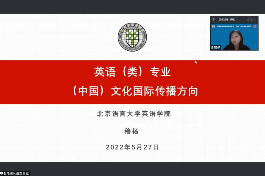 最后,英语学院院长、英语专业(文化国际传播方向)主讲人穆杨教授先以英语类专业的基础和发展为主题,向同学们点出“分流不分家”的概念,阐述了语言学习的共通性。同时,穆杨教授呼吁同学们提高自己对专业学习的要求,充实自己的大学生活。随后,穆杨教授举例向同学们阐明了中国文化国际传播工作的重要意义,细述了专业方向未来规划、就业方向、课程内容及学院举措。通过穆杨教授极具感染力的讲解,同学们对中国文化国际传播的使命与意义有了更深刻的理解。