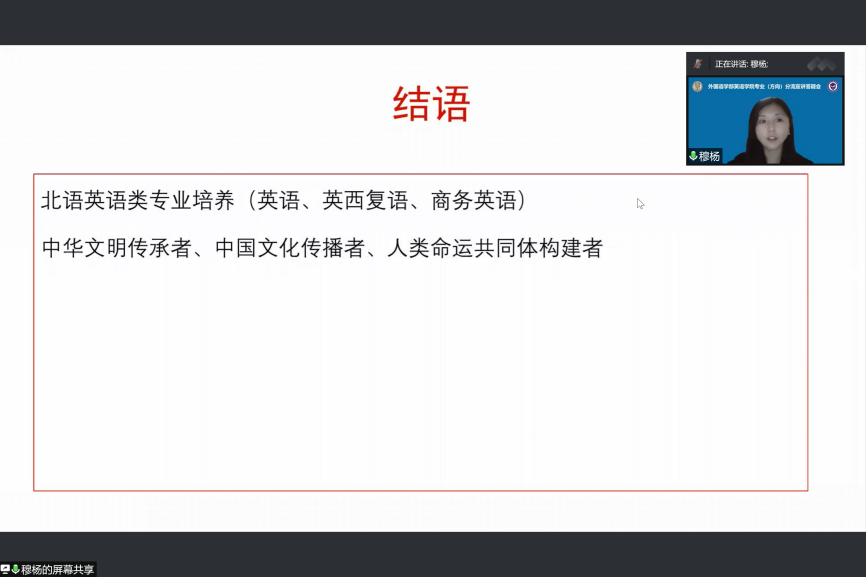 六个方向的专业宣讲答疑结束后,穆杨教授进行总结发言。穆杨教授向同学们传达了学校对同学们的殷切期望,鼓励同学们努力成为中华文明传承者、中华文化传播者和人类命运共同体构建者。同学们受益匪浅,更加坚定了在语言学习道路上不断提升自我的信念,立志成为讲好中国故事的高层次外语人才。