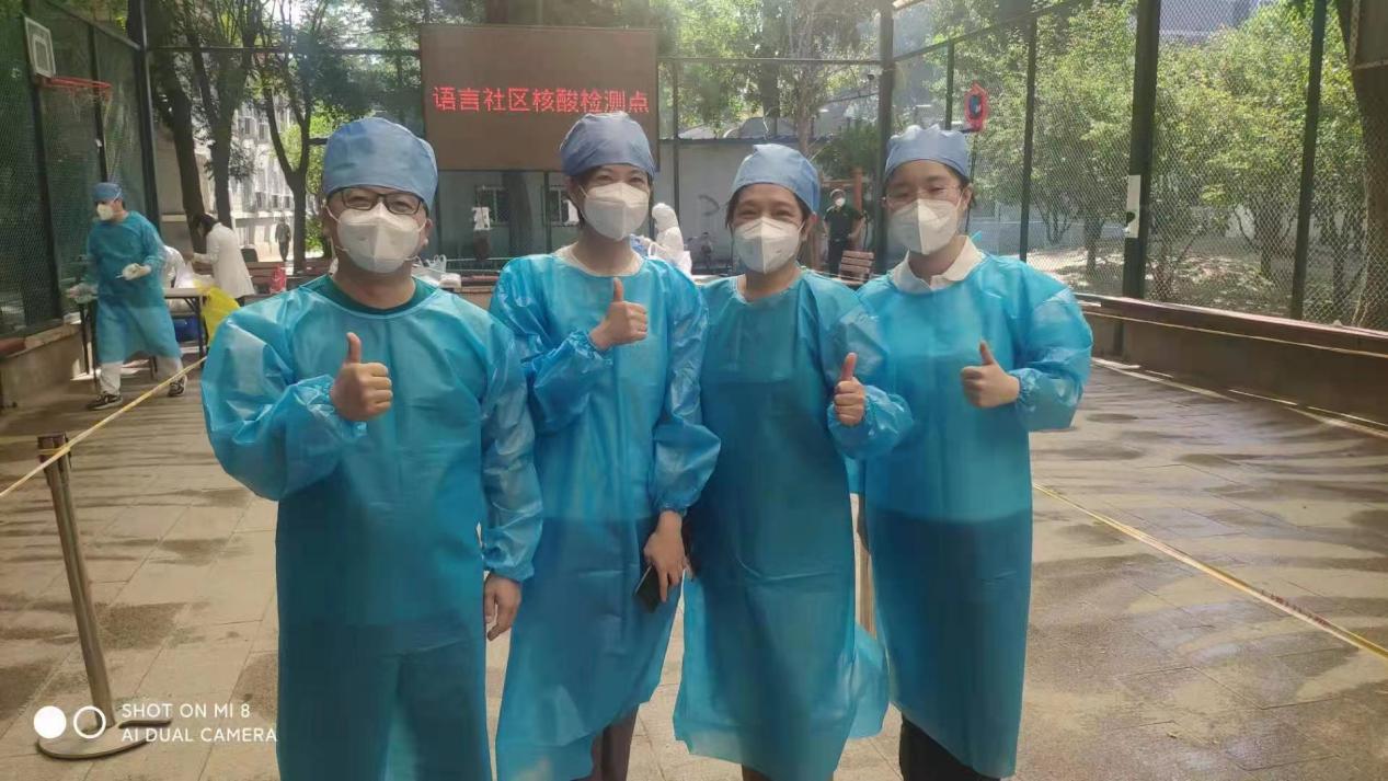 在职志愿者和社区工作者、社区志愿者、离退休工作处干部一道成为社区防控工作的重要力量。天气炎热,志愿者们在完成本职工作的同时,冒酷暑奔赴各个志愿工作岗位,为防控工作奉献着力量,他们一边服务一边迅速捋顺流程,以微信群为载体,按照任务分工,轮班上岗。他们有的引导老同志就医,有的帮助老同志取药,有的穿着防护服帮助核酸检测,有的在社区帮助解除弹窗,照顾困难同志,帮助解决居民各种各样的问题。他们行动迅速,经验丰富,随叫随到,高效完成,在各项工作中发挥重要的作用。