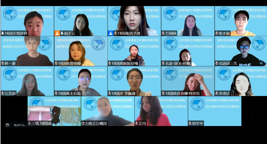 5月24日-6月2日,国际关系学院18级中外本科生和19级中外硕士研究生学位论文线上答辩顺利举行。