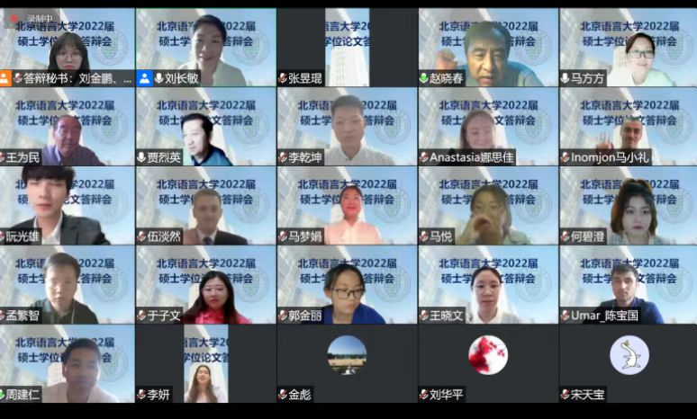 本次答辩流程严格执行《北京语言大学学位授予工作实施细则》的有关规定,全程录音录像以备查,答辩组织严密、过程严肃、管理有序,确保了学位授予的质量。整个答辩工作师生交流气氛融洽,过程顺畅,本次学位论文线上答辩会议圆满结束。